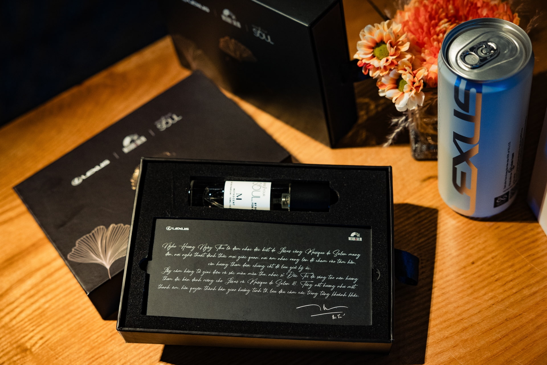 As a gesture of refined appreciation, Lexus and Musique de Salon presented distinguished guests with a special gift inspired by the melodies and hues of autumn. Composer Đức Trí created an exclusive fragrance — where each note lingers like a musical tone, blending into a delicate symphony that captures and preserves emotion in every moment.