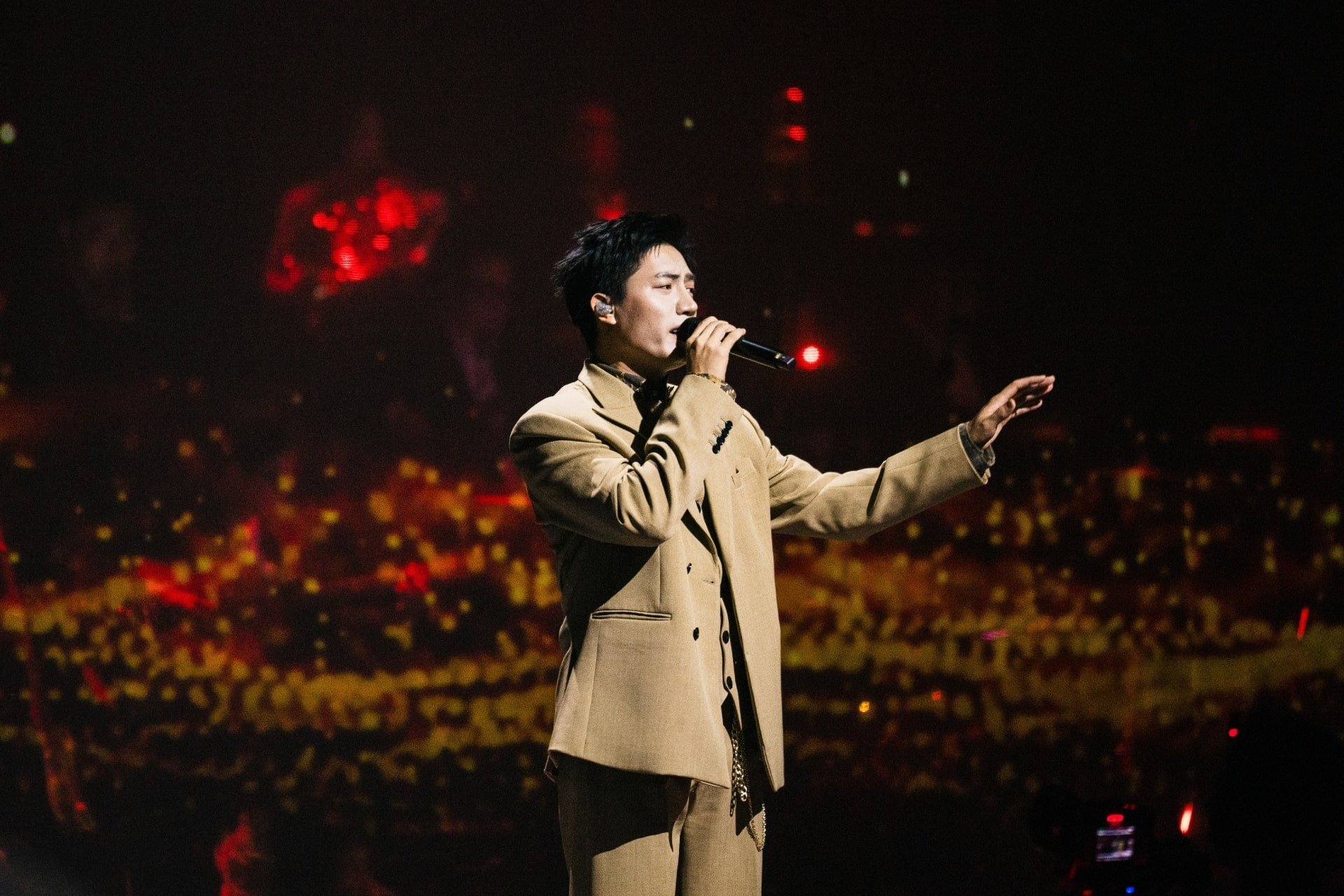 Next, Anh Tu surprised the audience with “Chuyến tàu hoàng hôn” — an unexpected choice for a singer known for contemporary pop. The beloved bolero classic was reimagined with a modern touch, blending contemporary sensibility with timeless emotion.